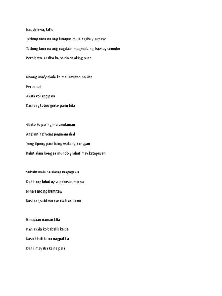 Mga naglalagasang dahon mula sa puno na walang mapaglagyan Bakit ganito. Hindi kona Mabilang pa Hanggang niligawan mo ako Pinaramdam mo kung Gaano ako ka espesyal para sayo. Bakit ngayoy tila gustong bumalik sayo.