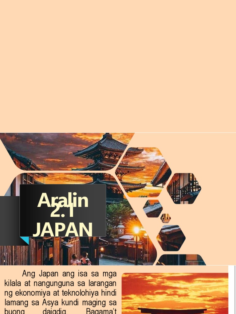 Download Full PDF Package. Ang Japan ay isa rin sa pinakasikat na bansa sa Silangang Asya na paboritong puntahan ng mga turista. Now up your study game with Learn mode.